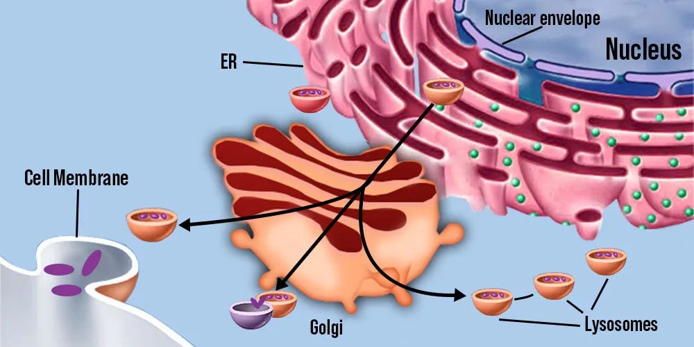 Interestingly, it seems β-arrestin in the golgi can form vesicles made from the golgi’s membrane, just like how β-arrestin forms endosomes which are also vesicles, but specifically made from the neuronal membrane surface, mentioned above [x].