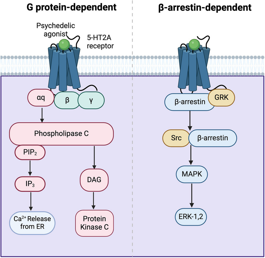 It’s great that the β-arrestin 2/C-Raf/MEK/ERK complex from intracellular 5-HT2A is the true antidepressant pathway of 5-HT2A because it’s not associated only the Gq/s/i-protein pathways are associated with hallucinations.