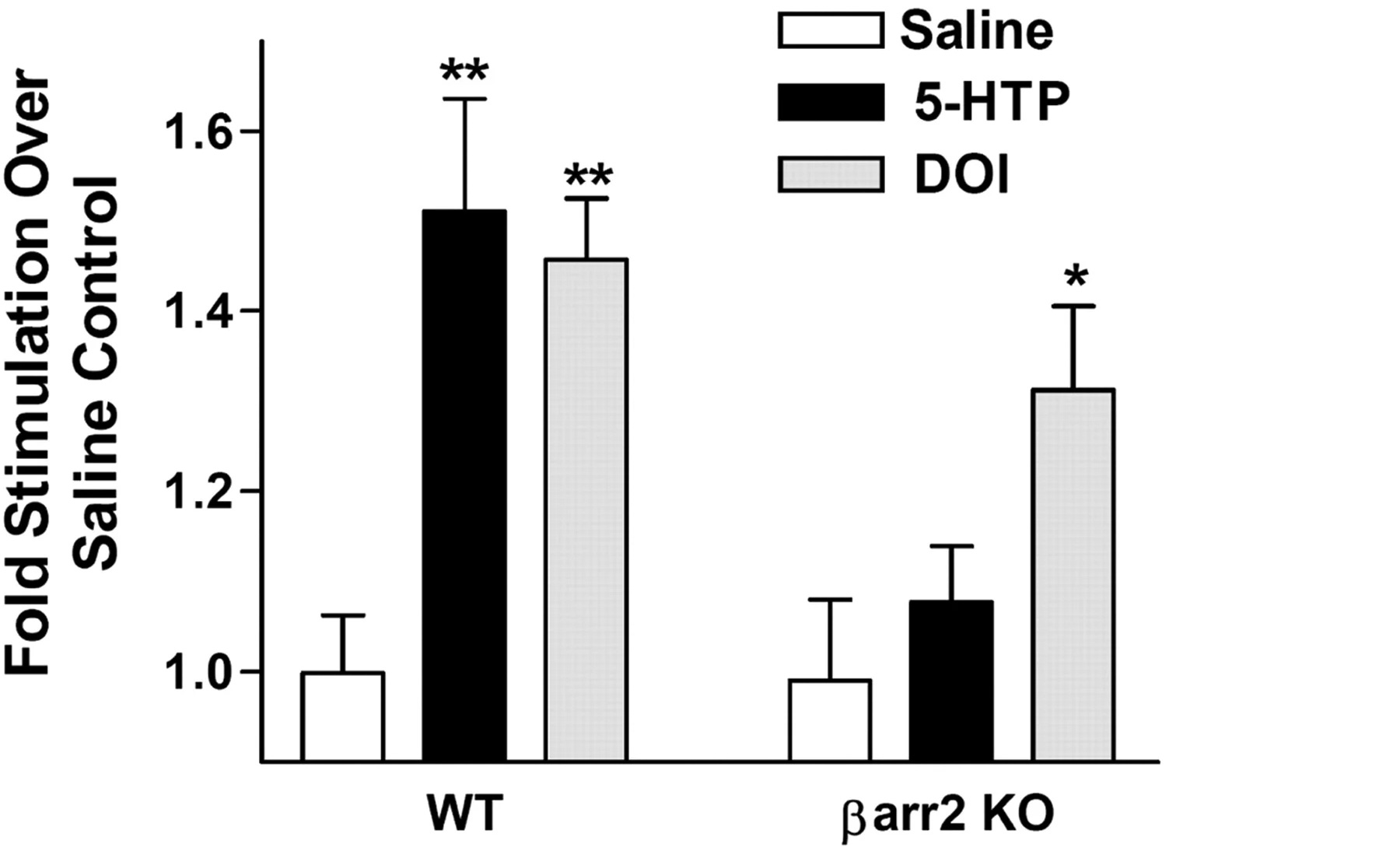 β-arrestin knockout for Serotonin and DOI both in vivo and in vitro results in a loss of total ERK activation [x].