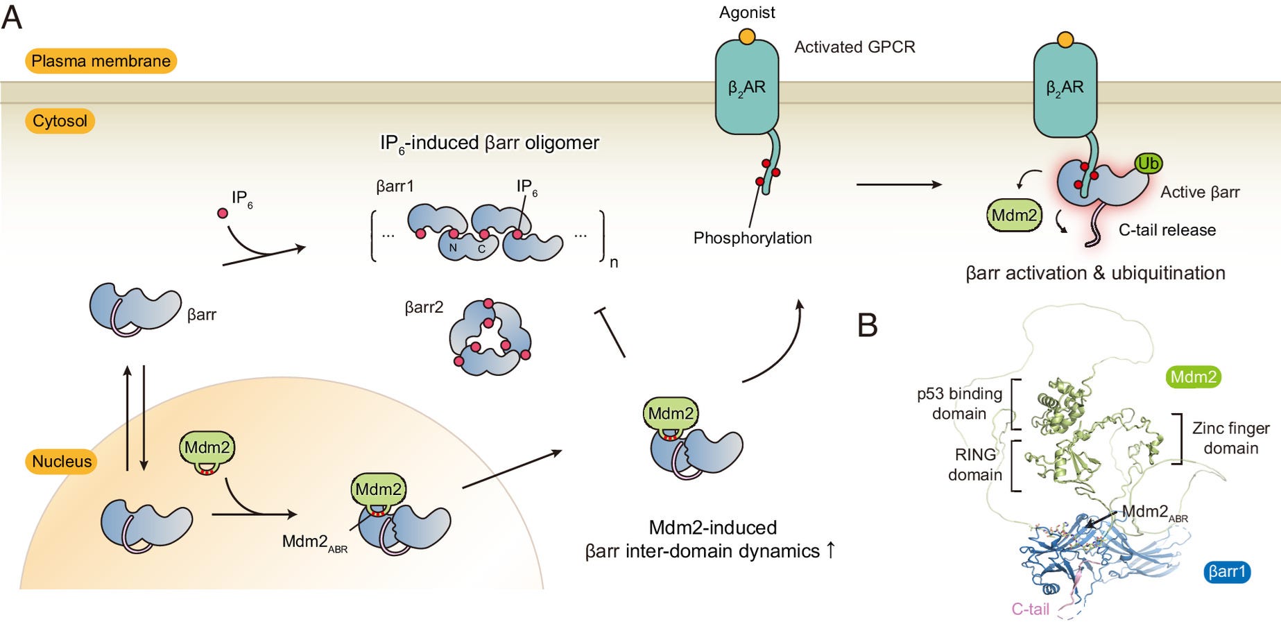 In all the writing below, the ubiquitination is done by Mdm2 and the deubiquitination is done by USP20/33, and β-arrestin can be either β-arrestin 1 or 2, so I don’t have to repeatedly name them.
