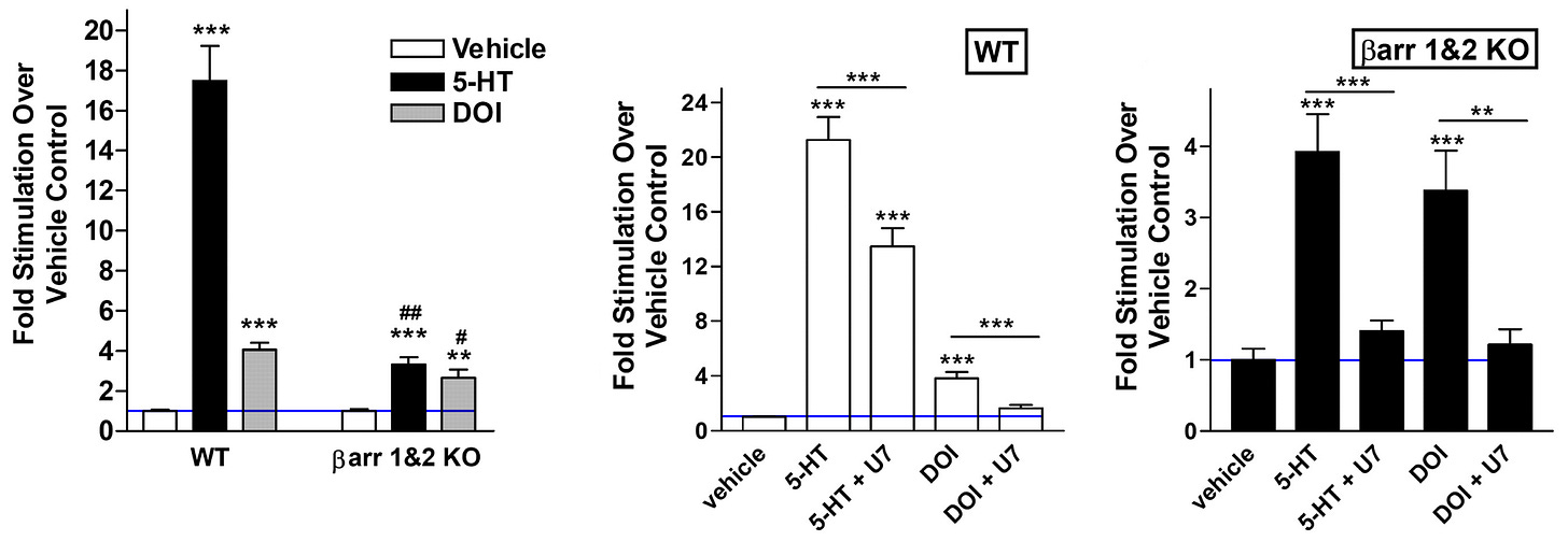 Anyways, the main point is that both in vivo and in vitro evidence shows that psychedelics (DOI) do use β-arrestin to activate ERK.